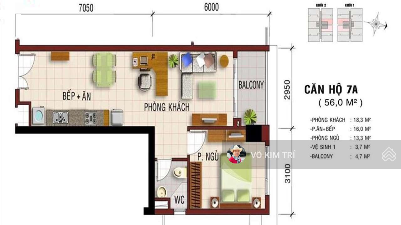 Diện tích: 56m².