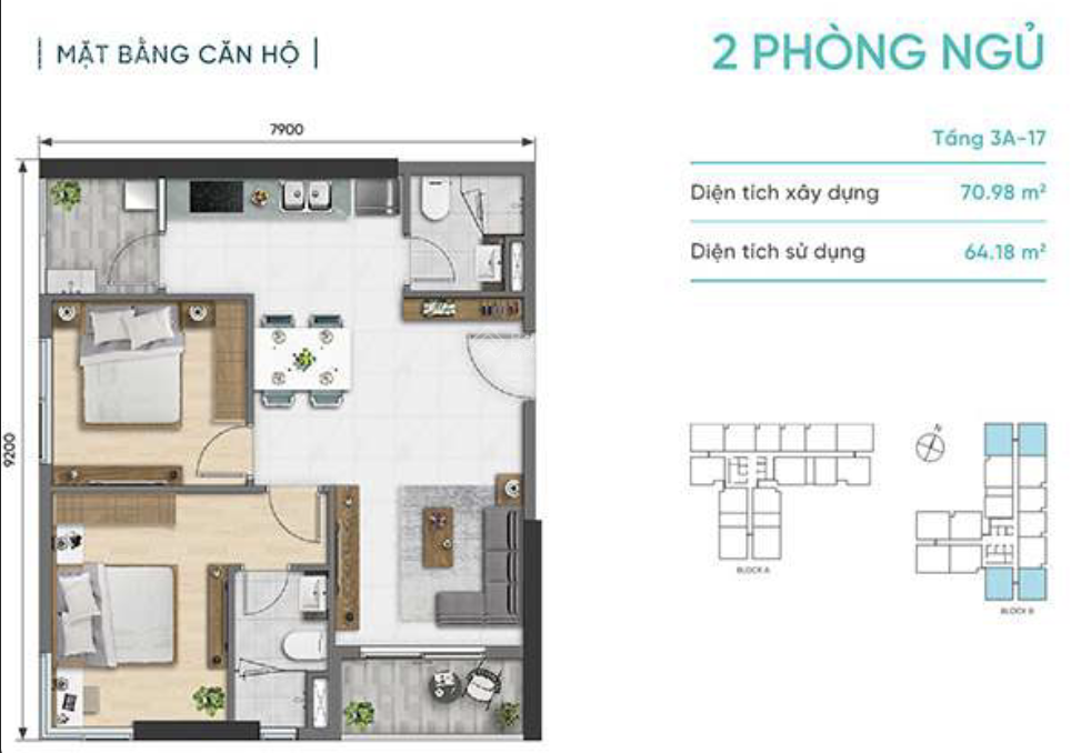 - Diện tích: 70,98m².