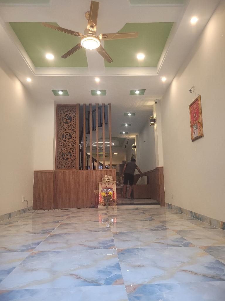 # Nhà mới xây 1 trệt 2 lầu sân thượng, 2 phòng khách rộng, do chiều dài đến 32m nên chủ xây chừa trước 7m để xe hơi và xe máy thoải mái, chừa sau 3m, 5 PN và phòng thờ đều có cửa sổ, giếng trời cực sáng thoáng. Tầng trệt chủ dự định kinh doanh